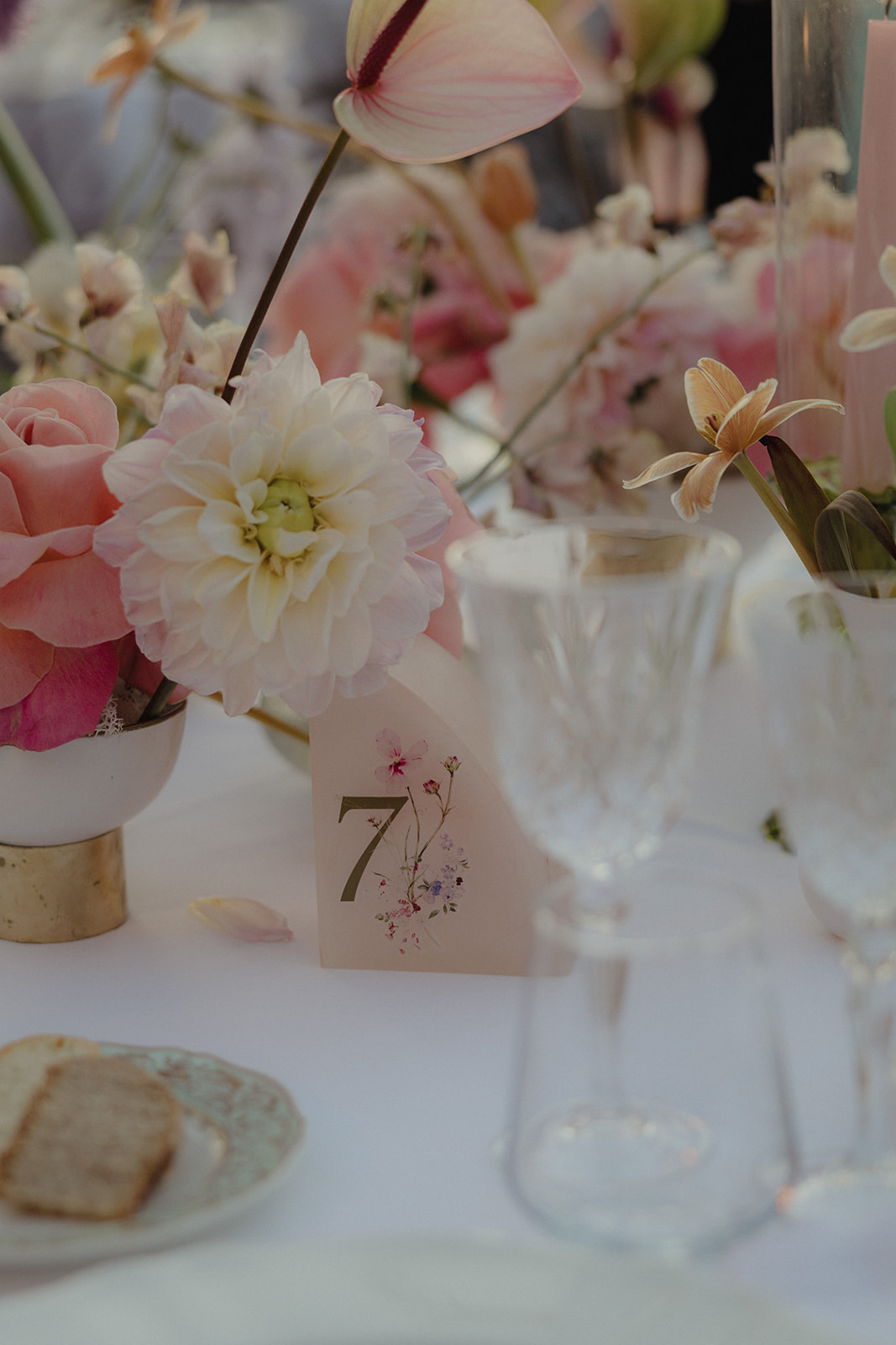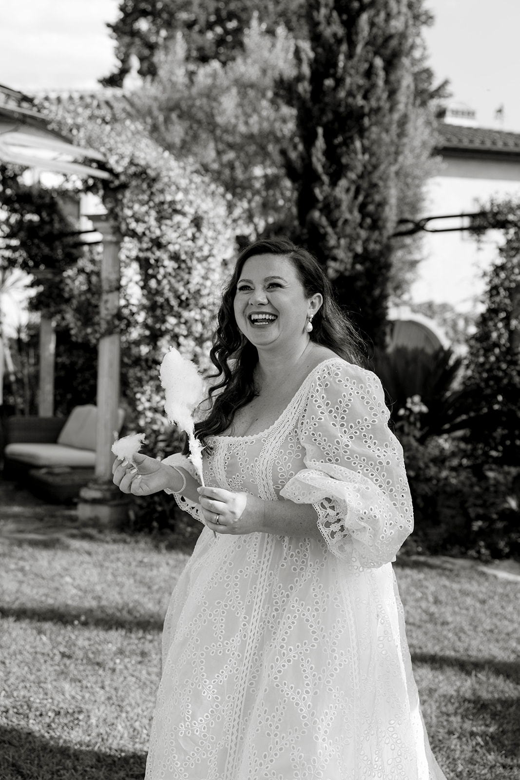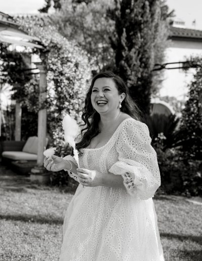 Playful and unexpected details added character to the reception: a fruit wedding cake, a cotton candy station and oversized floral installations created an atmosphere that felt both elegant and imaginative.