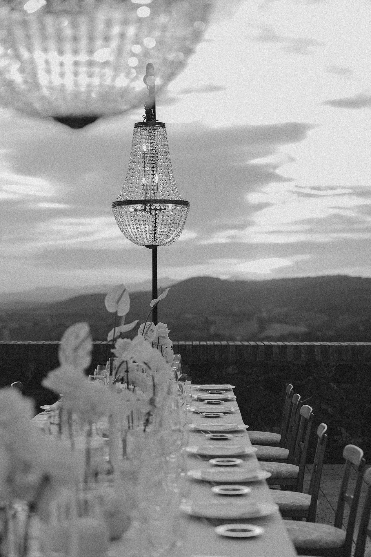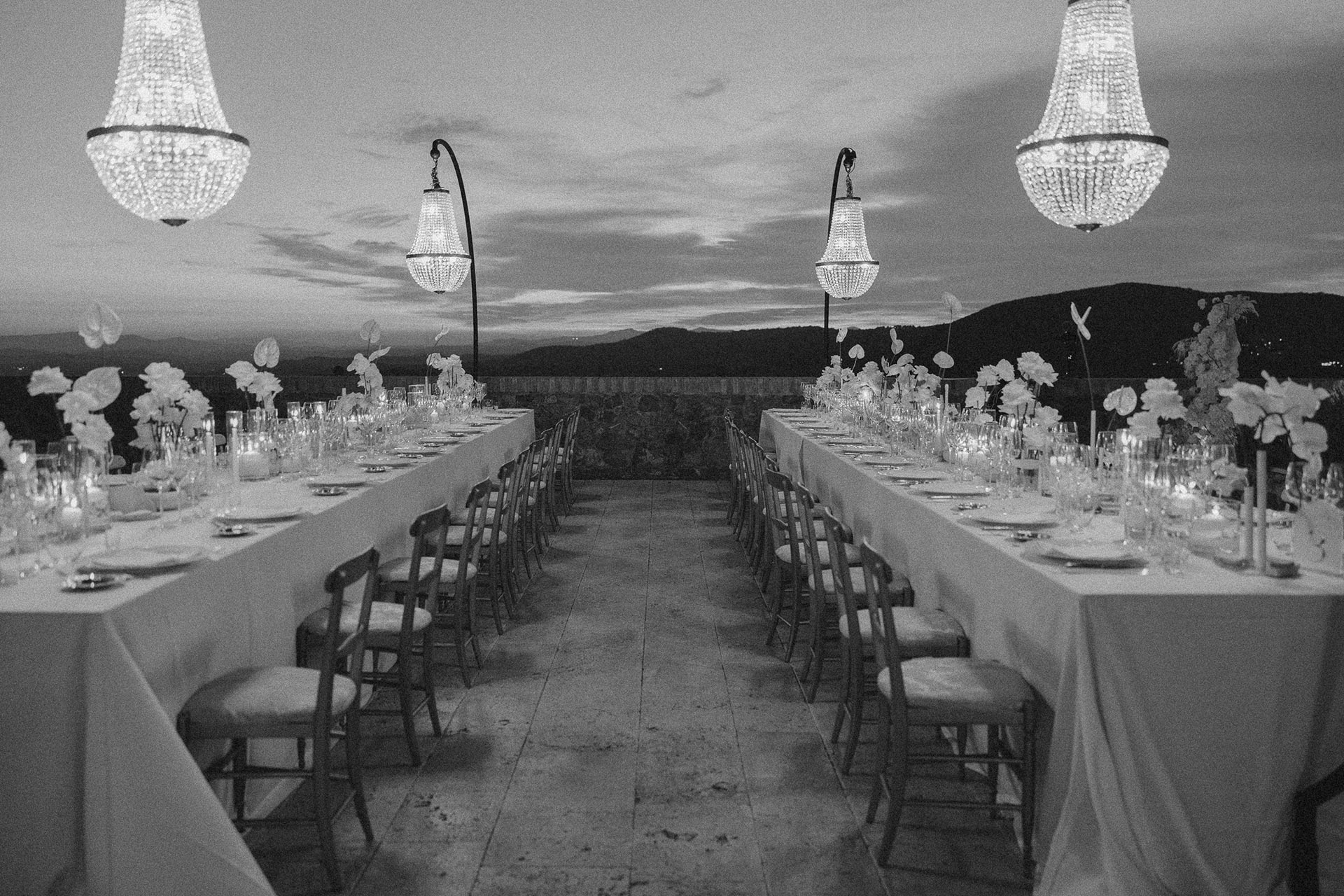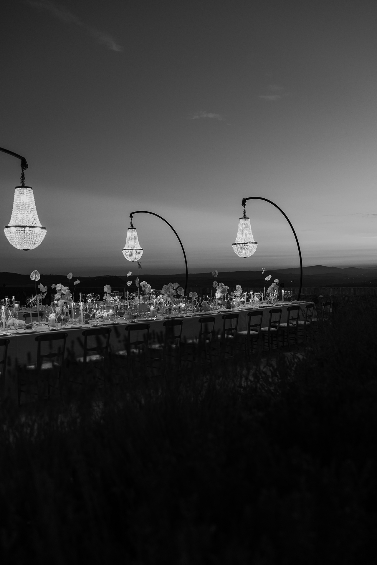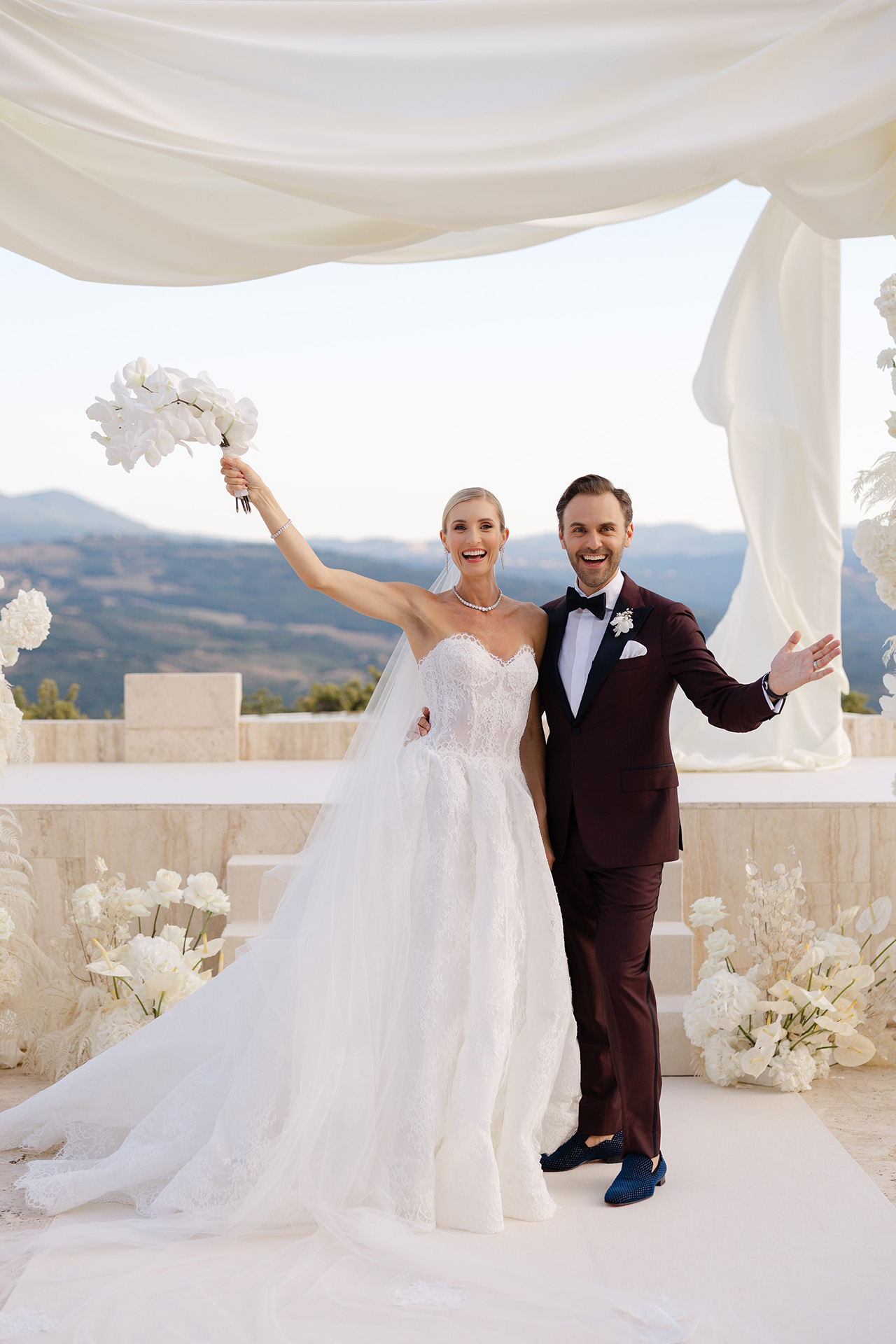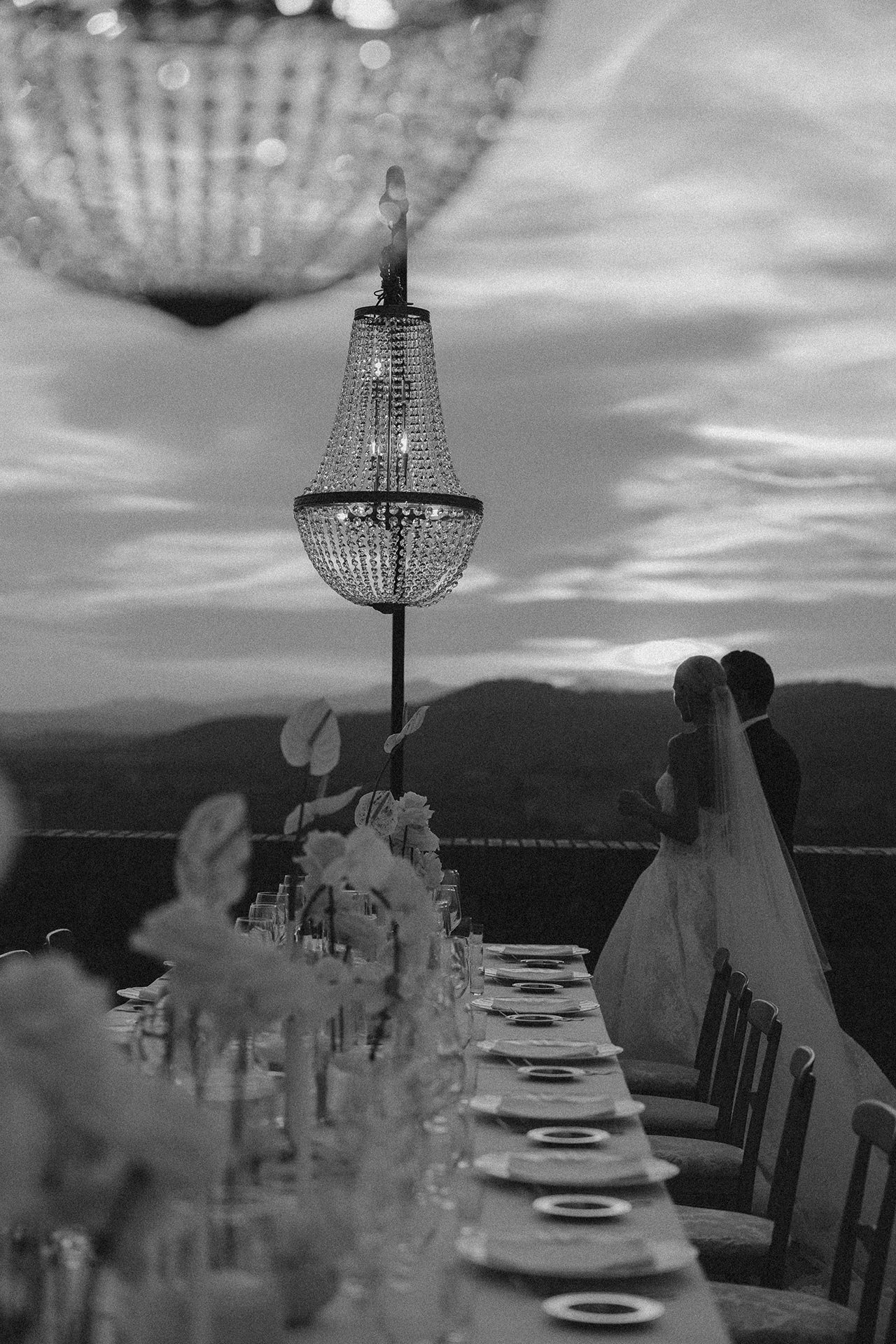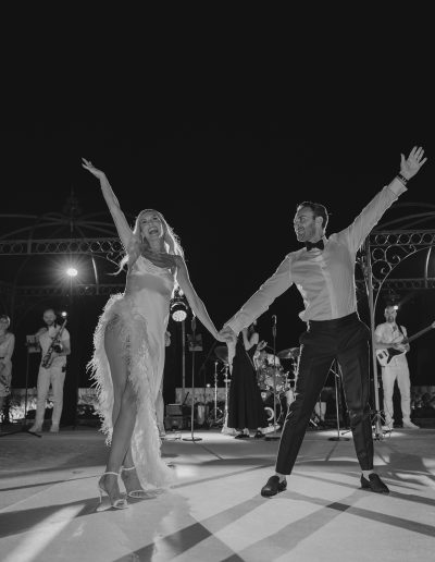 The natural elegance of Tuscany became the ideal backdrop for their dream wedding. Inspired by the glamour of the 1960s, the aesthetic concept combined subtle references to Dior with the atmosphere of the iconic Italian venue Piper Disco, creating a unique dialogue between nostalgia and contemporary sophistication.