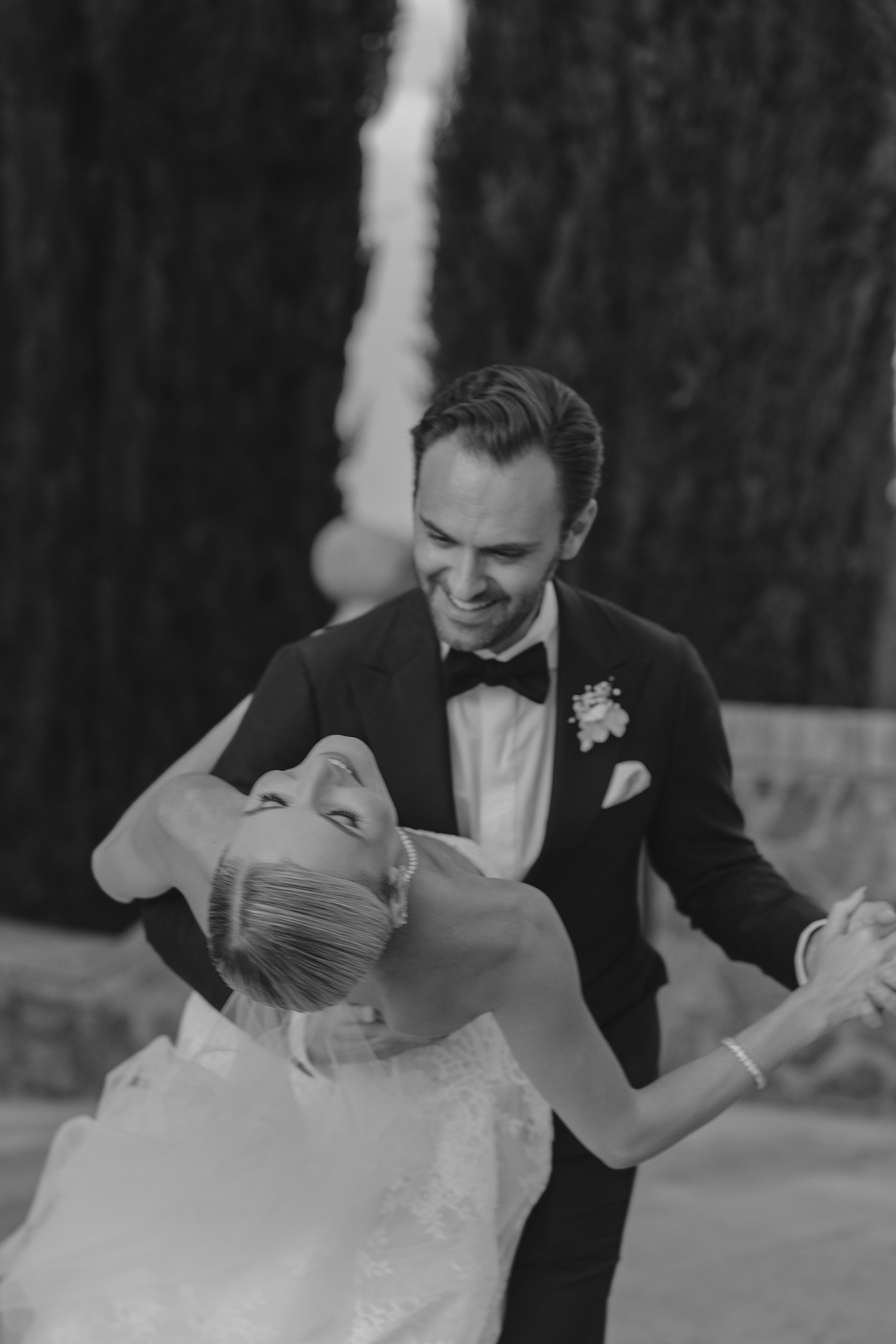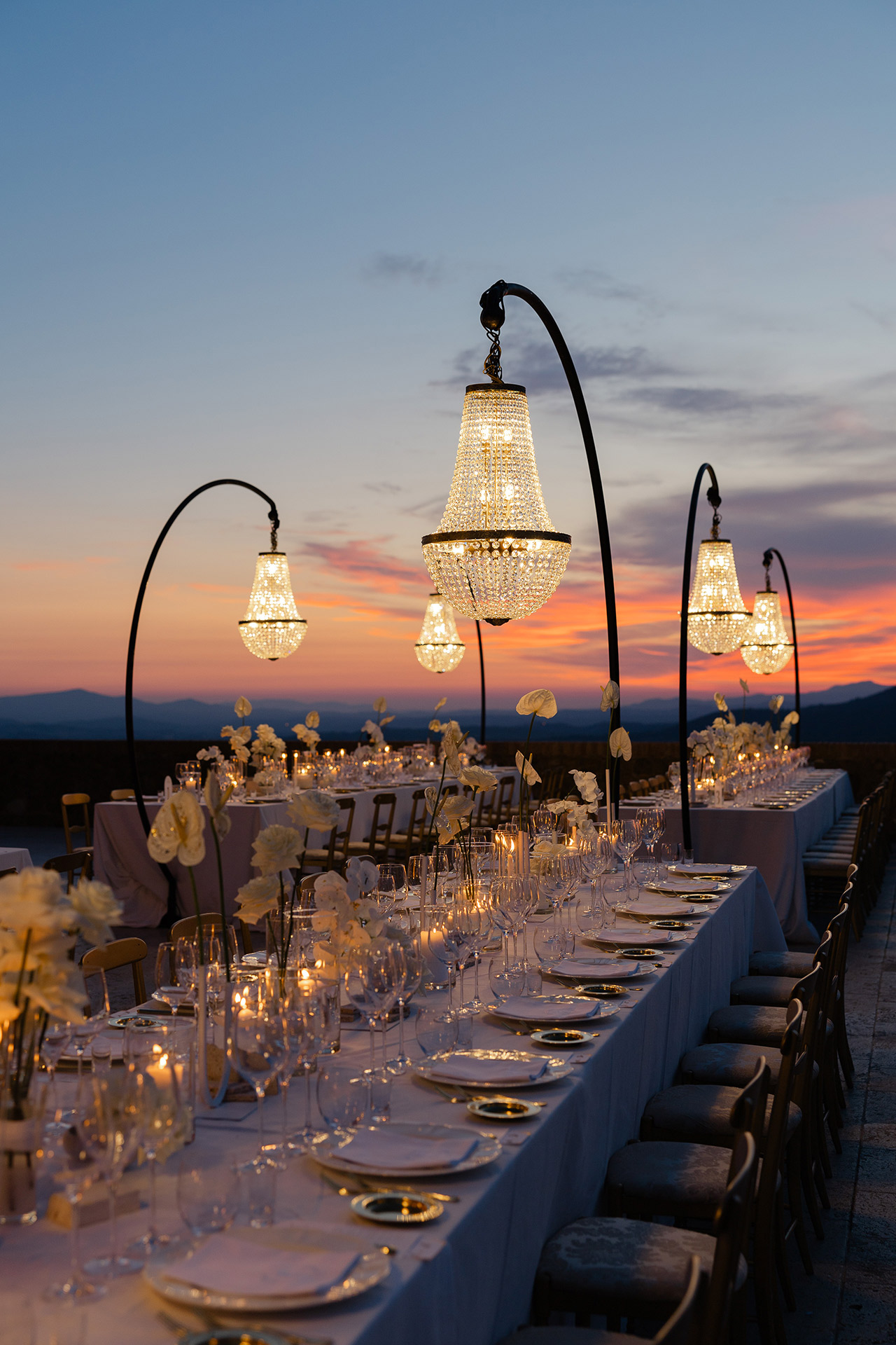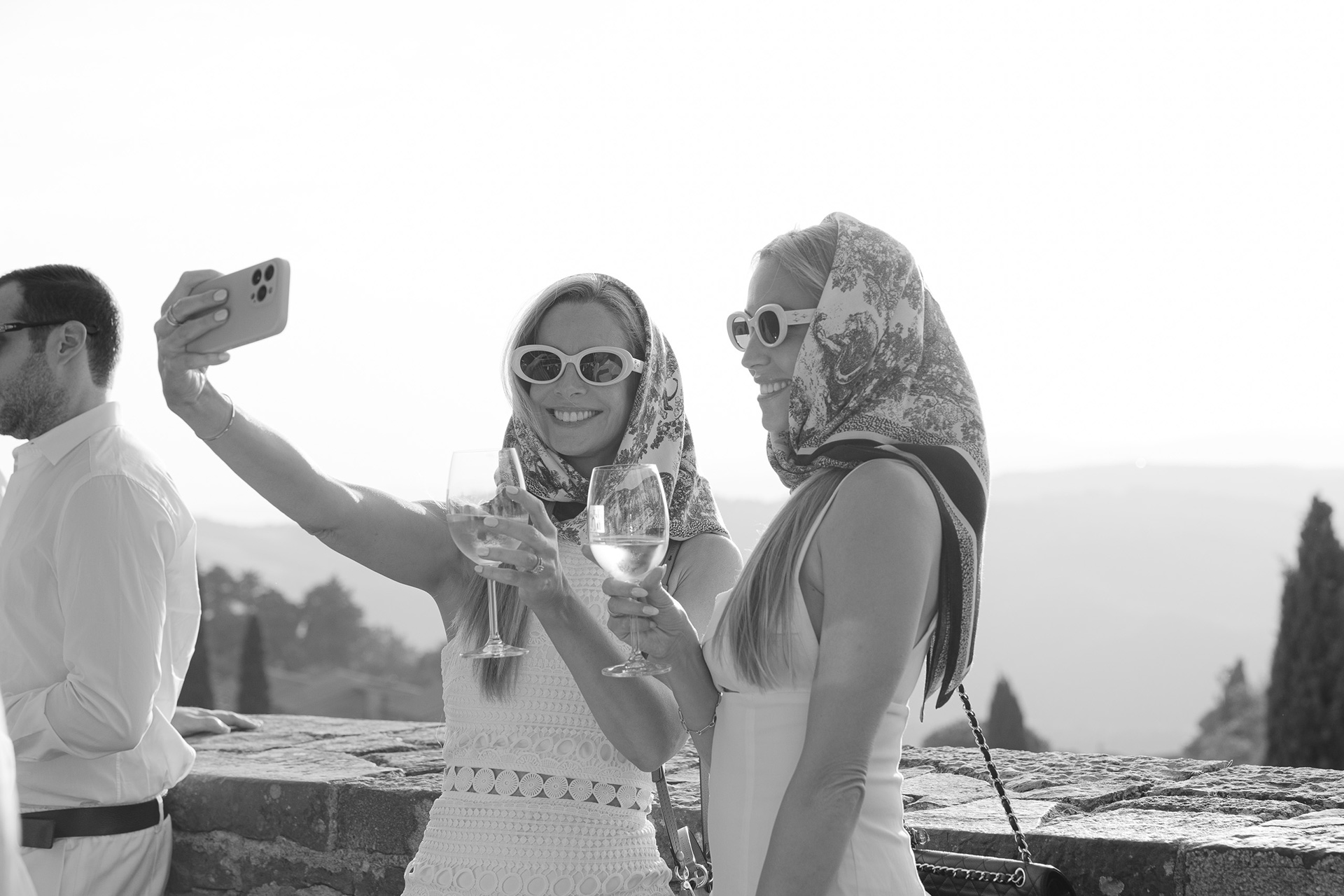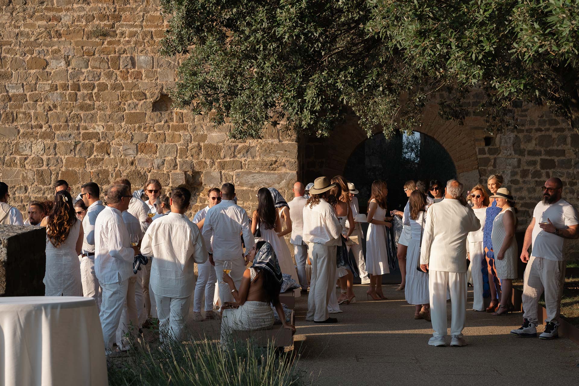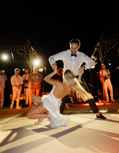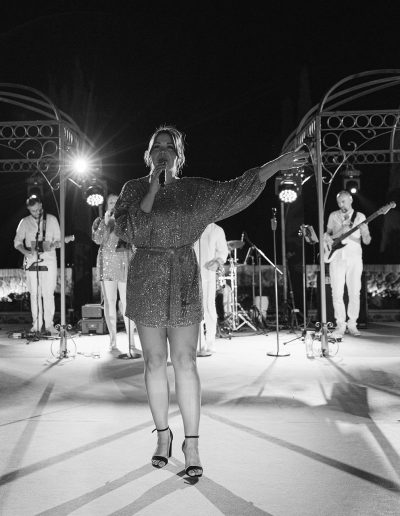 The natural elegance of Tuscany became the ideal backdrop for their dream wedding. Inspired by the glamour of the 1960s, the aesthetic concept combined subtle references to Dior with the atmosphere of the iconic Italian venue Piper Disco, creating a unique dialogue between nostalgia and contemporary sophistication.