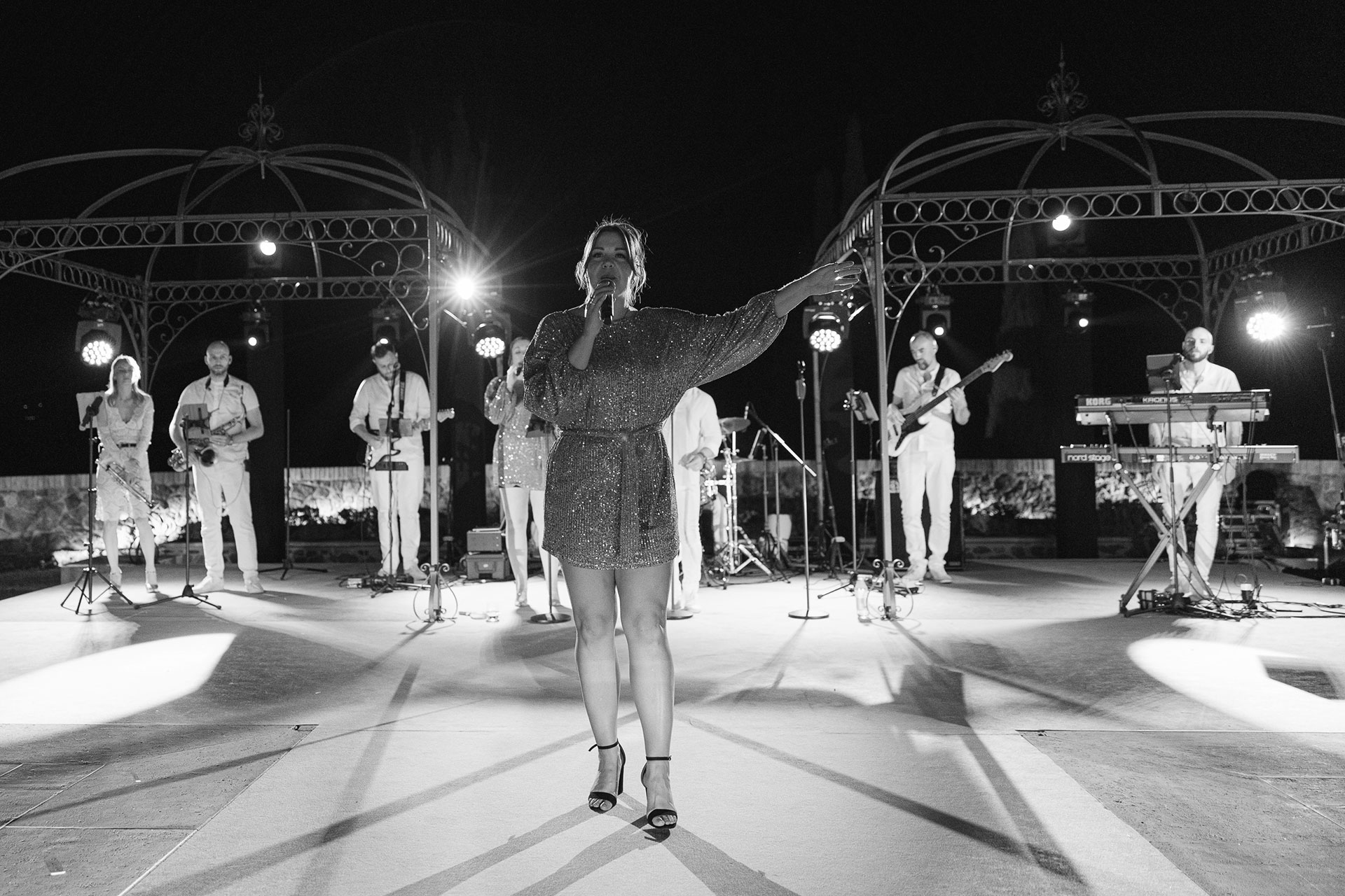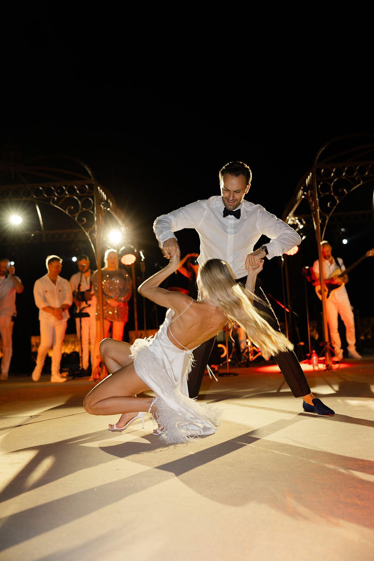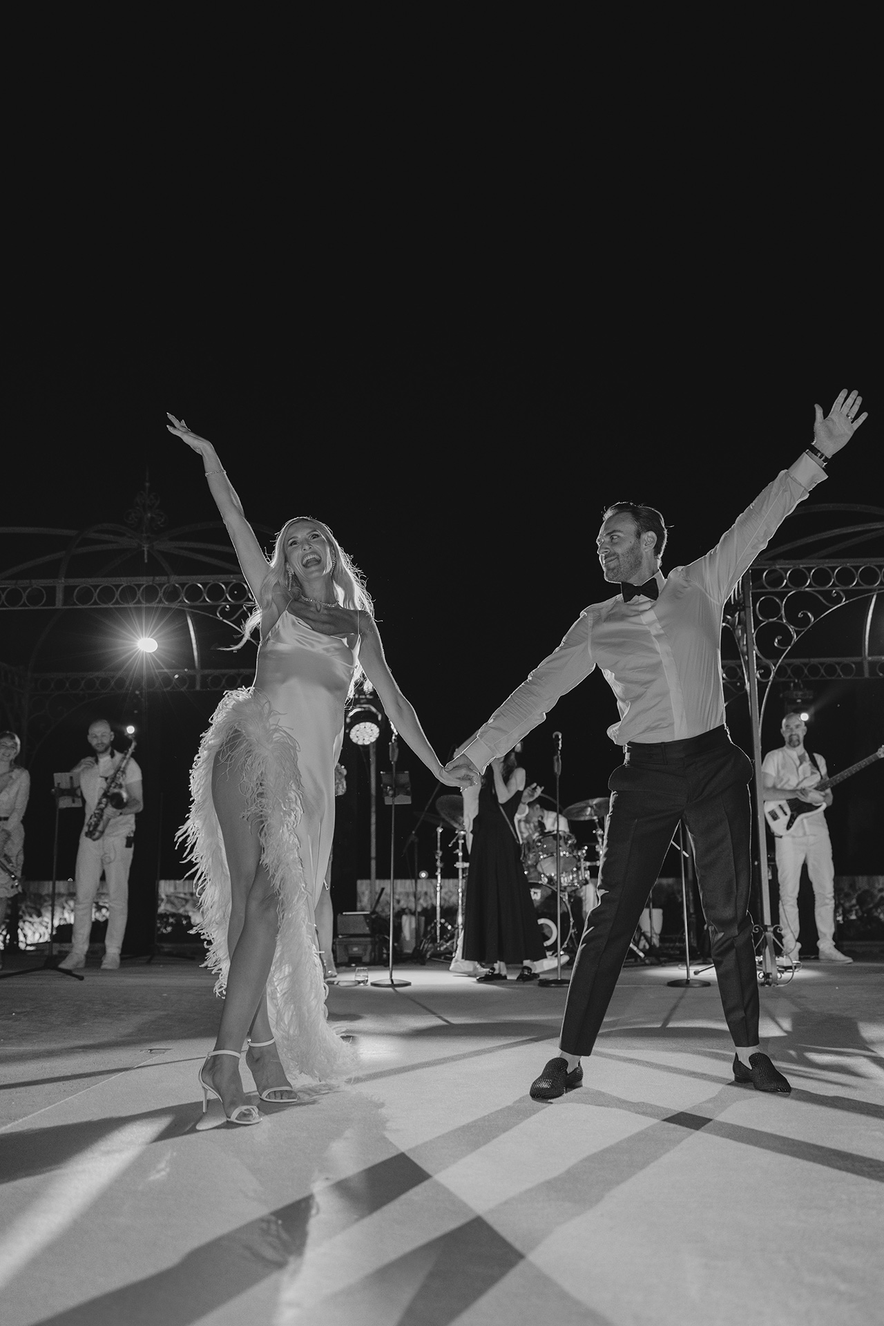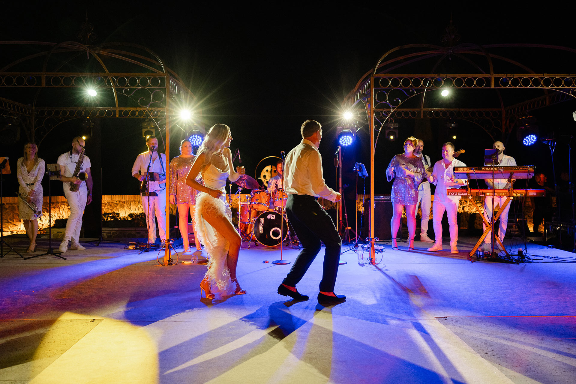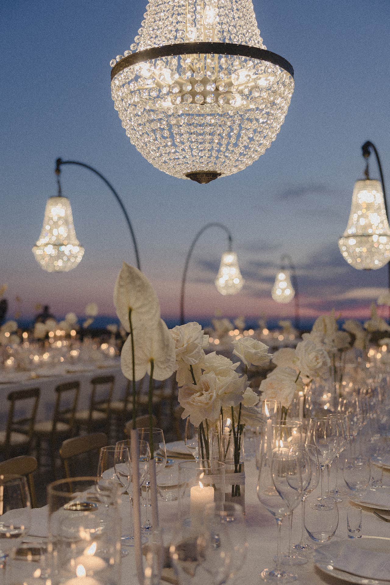 The natural elegance of Tuscany became the ideal backdrop for their dream wedding. Inspired by the glamour of the 1960s, the aesthetic concept combined subtle references to Dior with the atmosphere of the iconic Italian venue Piper Disco, creating a unique dialogue between nostalgia and contemporary sophistication.