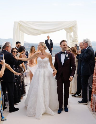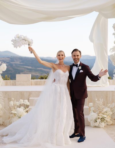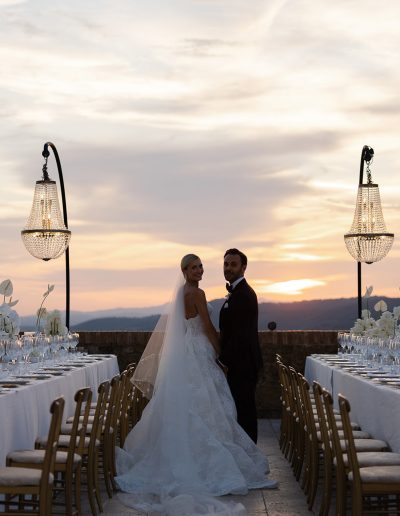 The result was a truly unforgettable wedding at Castello di Velona, where the timeless charm of Tuscany met the elegance of a carefully curated celebration, transforming the day into a moment of beauty, emotion and shared memories.
